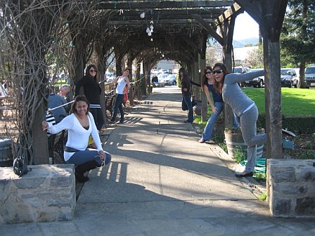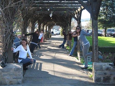 After lunch we head up to the Schramsberg Winery. As we drove up north to this winery we passed one of the infamous Napa signs. You know we had to take a pic in front of it! The funnest part was running across HWY 29. And Cheri HAD to take photos of this…hilarious. After that we headed into the hills on the one lane/two way road to Schramsberg. This winery was breath-taking. The sad thing is we only got a chance to walk around. The last tour left right before we arrived…plus it is a reservation tour, which is good to know for the next time. I am so game to go through their cave system, etc! Here are some pics from this part of our journey.